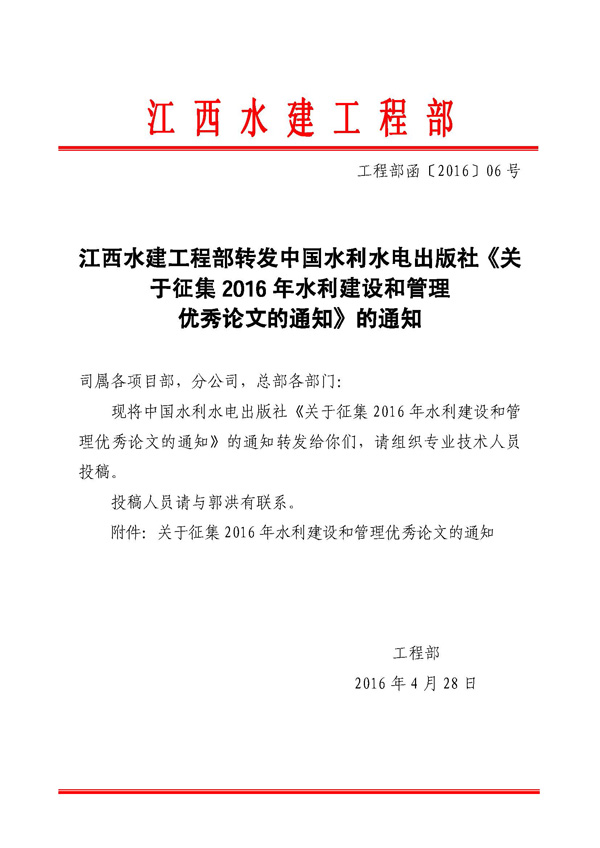 轉發征集2016年水利建設和管理優秀論文的通知